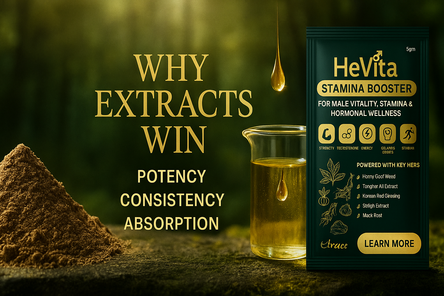 Our extracts are carefully standardized for high bioavailability, ensuring faster absorption and longer-lasting effects — without artificial stimulants or side effects. With HeVita, nutrients reach where they are needed most, helping you unlock strength, stamina, and recovery naturally.